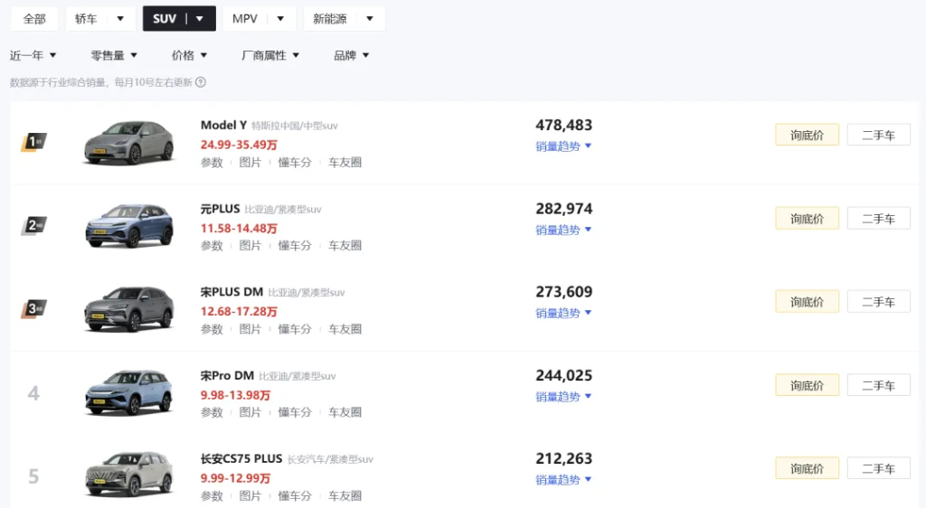 回首昔日近一年的销量得益,特斯拉 Model Y 以 47.8 万台的销量稳居中国 SUV 榜单的销量冠军,在新能源的细分赛说念中更是难以越过的存在。